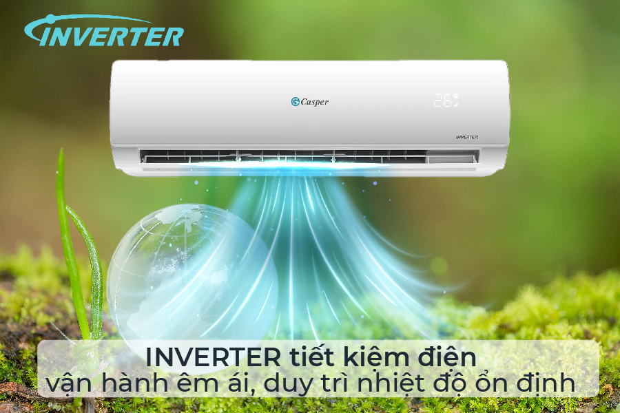 Công nghệ biến tần giúp điều chỉnh tốc độ hoạt động của máy nén theo nhu cầu làm lạnh thực tế.