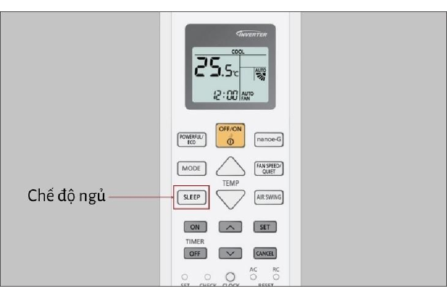 - Nhấn nút “Sleep” trên remote