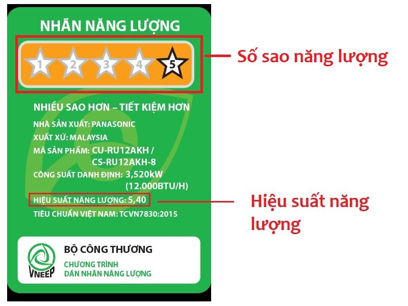 ⭐ Ý nghĩa các thông tin trên nhãn năng lượng điều hòa