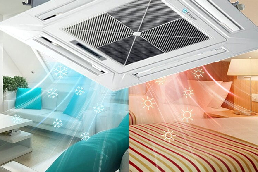 Điều hòa âm trần (cassette) là dòng máy lạnh được thiết kế với dàn lạnh lắp âm bên trong trần nhà, mang lại tính thẩm mỹ cao và tối ưu không gian.